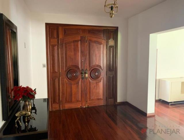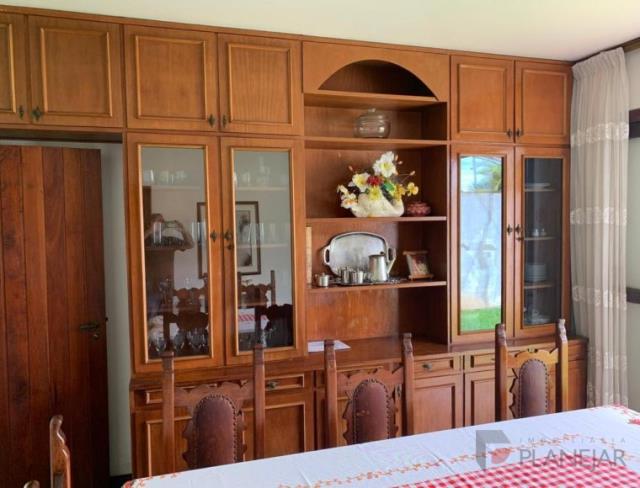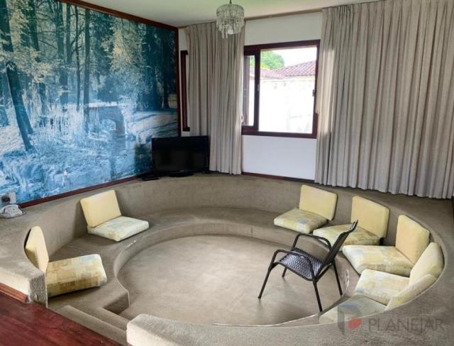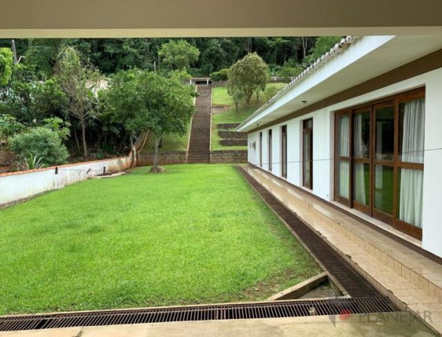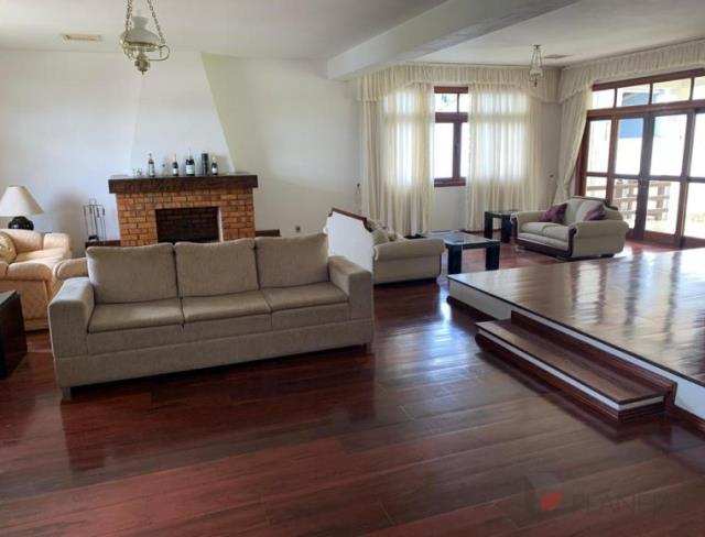 Com lareira na sala principal, biblioteca, cozinha e copa, sala de estar, sala de jantar, sala para convivencia com sofá embutido no chão, lavanderia, garagem para 3 veículos, 4 quartos sendo 1 suíte principal, dois banheiros privativos, um lavabo social.